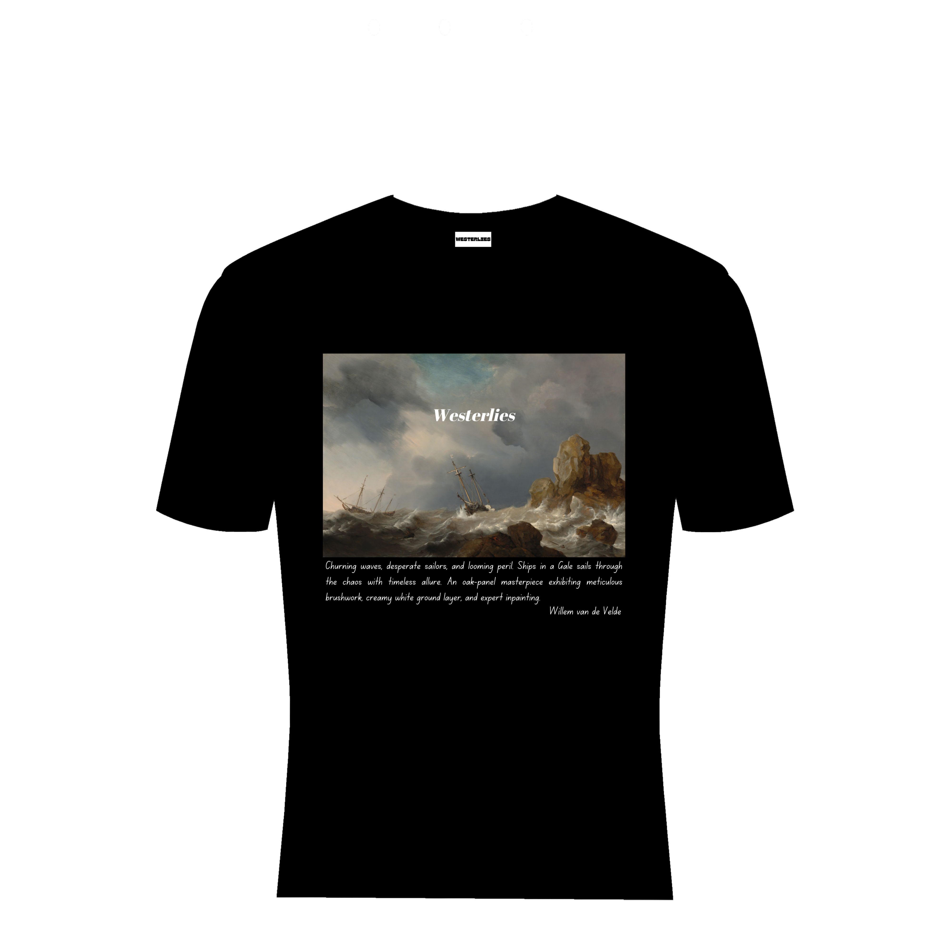 At Westerlies, we strive to create clothing that not only appeals visually but also tells a meaningful story. This tee represents more than just fashion; it is a tribute to the enduring spirit of exploration and courage. By incorporating “Ship in a Gale” into our collection, we aim to offer a piece that inspires and connects with the adventurous spirit within us all. This design exemplifies our dedication to merging classic art with contemporary fashion, providing timeless pieces that speak to the heart and soul.